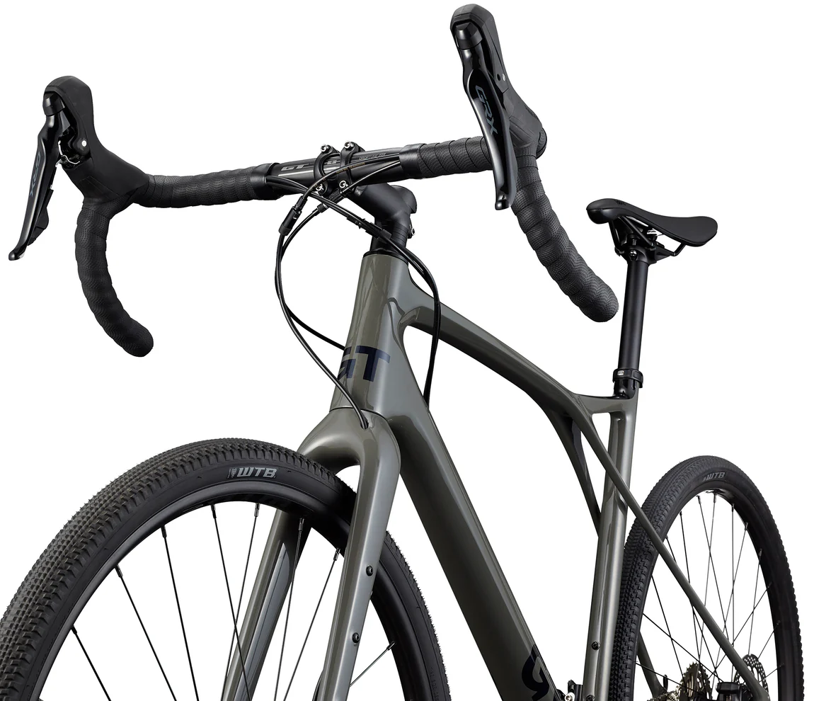An inventive bike should go with an innovative ride. With our entry-level carbon gravel bike, shift gears and discover new off-road experiences. fully fitted with brakes and a Shimano GRX 400 drivetrain.